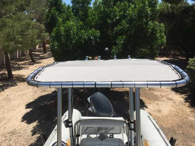 The tubing is 1-1/2" schedule 40 pipe with a 1.900" outside diameter. The tube material is 6061-T6 marine grade aluminum that is polished and bright dip anodized which is the industry standard for T-Tops, wakeboard towers, radar arches, tuna towers, etc. All the hardware is 316 grade stainless steel, also a workhorse of the marine industry. The fabric is Sunbrella Marine grade Acrylic.