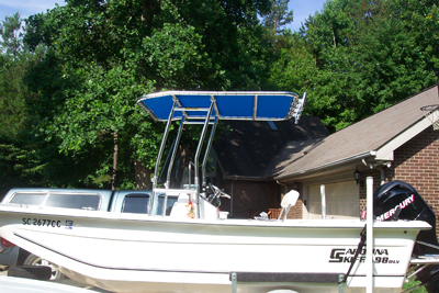 Fishmaster T-Tops are made of 1.90" Aviation and Marine grade 6061-T6 extruded aluminum. This material yields a ttop structure that is strong enough to handle choppy waters while being light enough for an easy fold. To protect against degradation of the outdoors these are bright dipped and anodized providing high luster polished finish. Hard to imagine this level of quality can come from a couple boxes that are shipped to your door step in just a couple corrugated cartons!