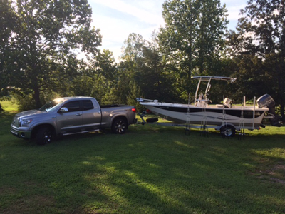 We recommend, when trailering any of our t-tops, to have them in the upright position and to not exceed recommended highway speeds.