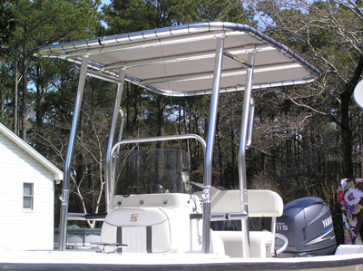 Fishmaster T-Tops are made of 1.90" Aviation and Marine grade 6061-T6 extruded aluminum. This material yields a ttop structure that is strong enough to handle choppy waters while being light enough for an easy fold. To protect against degradation of the outdoors these are bright dipped and anodized providing high luster polished finish. Hard to imagine this level of quality can come from a couple boxes that are shipped to your door step in just a couple corrugated cartons!