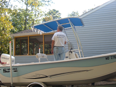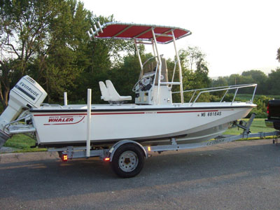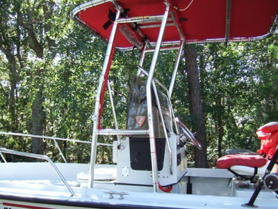 - 0 people found this helpfulHere's my new Fishmaster T-top installed on my 19' BostonWhaler Outrage. Greg was particularly helpful in placing my order. My boathas a tilting center console and he recommended adding an additional set ofhorizontal stabilizers as well as the vertical stabilizers. Installationwent very well although it took a little more thought to locate the extrastabilizers. The end result is stunning. Beautiful, strong and quite.Everyone compliments the new T-top.
